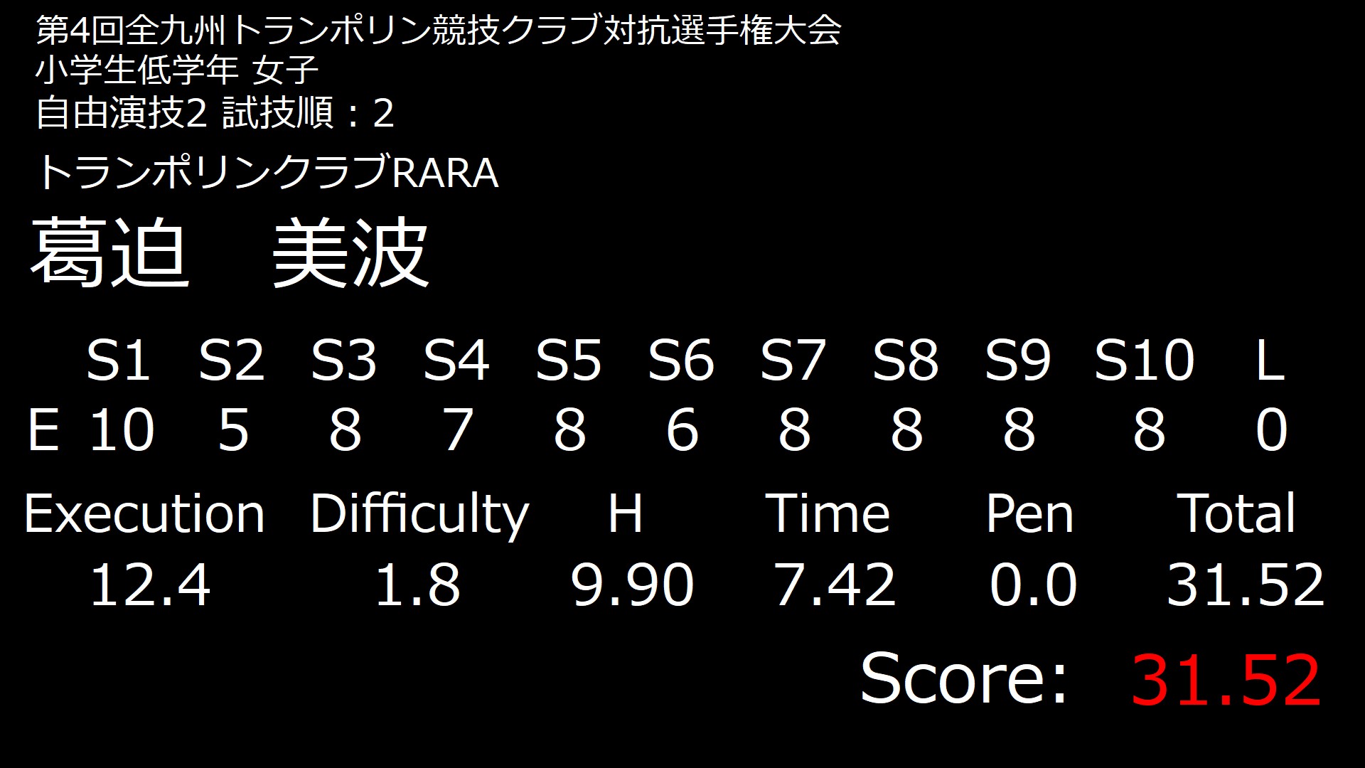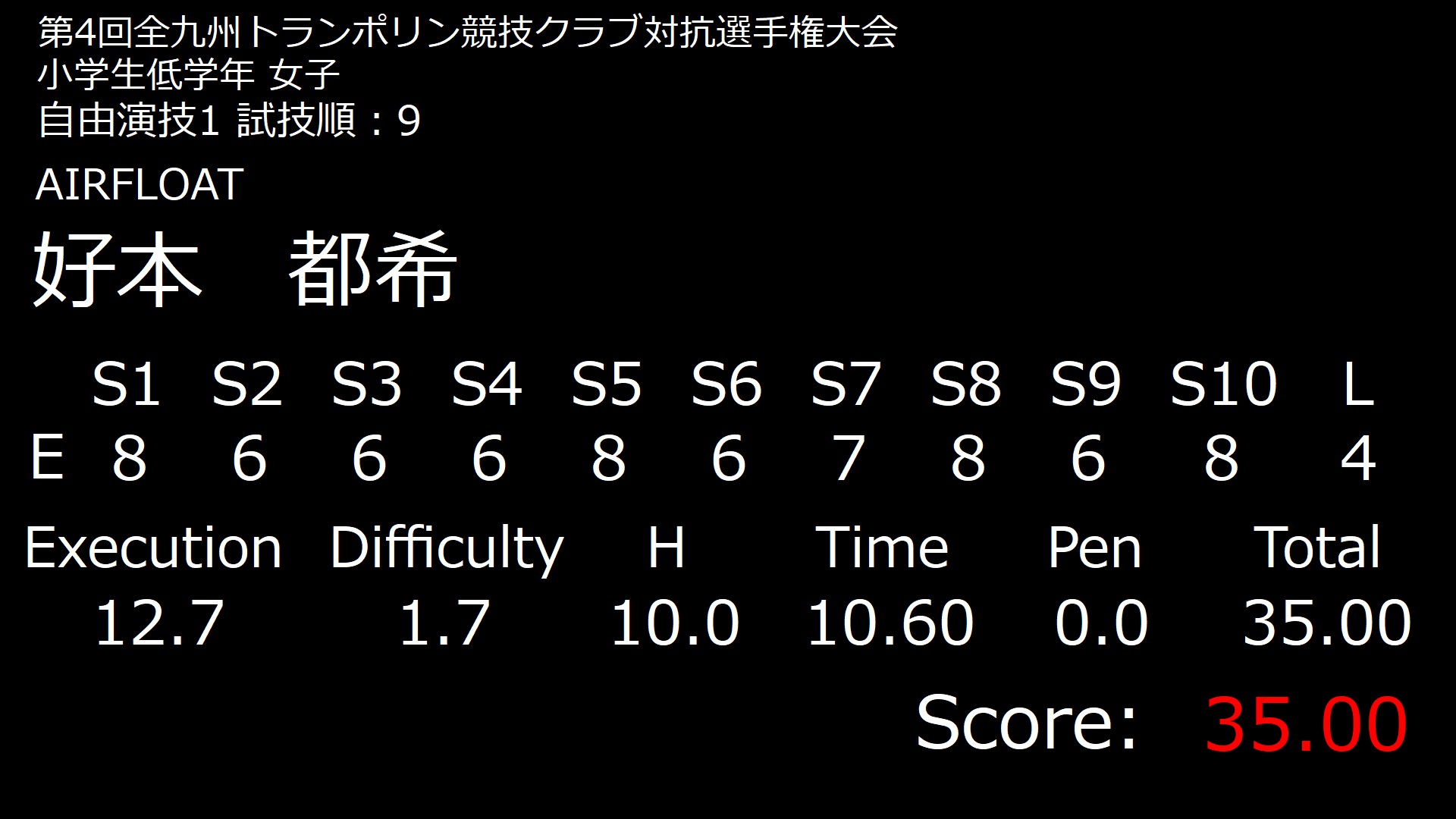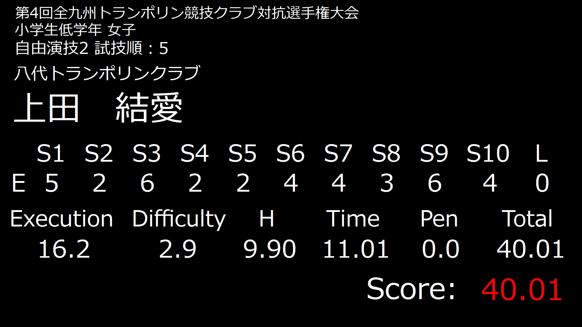 ■決勝結果 小学生低学年 女子 試技順 1 自由1 自由2 2 自由1 自由2 3 自由1 自由2 4 自由1 自由2 5 自由1 自由2 6 自由1 自由2 7 自由1 自由2 8 自由1 自由2 9 自由1 自由2 10 自由1 自由2 11 自由1 自由2 12 自由1 自由2 投稿ナビゲーション 個人結果 中学生 女子 個人結果 小学生低学年 男子